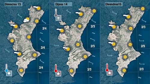 Dijous serà un dia assolellat amb les temperaturesmés altes a la mitad sud de la Comunitat mantenint-se sense canvia al nord.