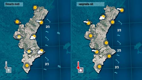 Demà dimarts tret d’alguns núvols que es voran de matí a la costa i de vesprada a les muntanyes de l’interior esperem un dia assolellat i amb temperatures més altes.