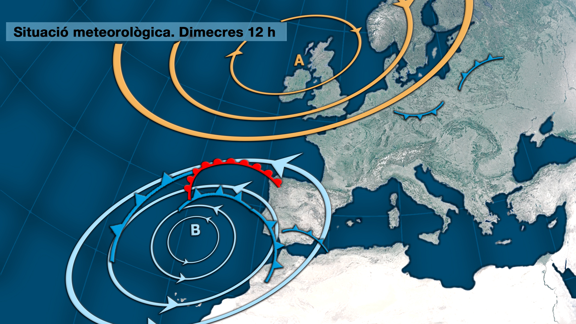 Es tracta d’una borrasca que quedarà molt lluny de nosaltres. Es passearà fornt les costes de Portugal on fins divendres les pluges seran intenses i generals però a la Comunitat Valenciana només enviarà franges de núvols que arribaran poc actives i que en tindre pas pel nord d’Àfrica la poca pluja que descarreguen serà bruta, acompanyada de fang.