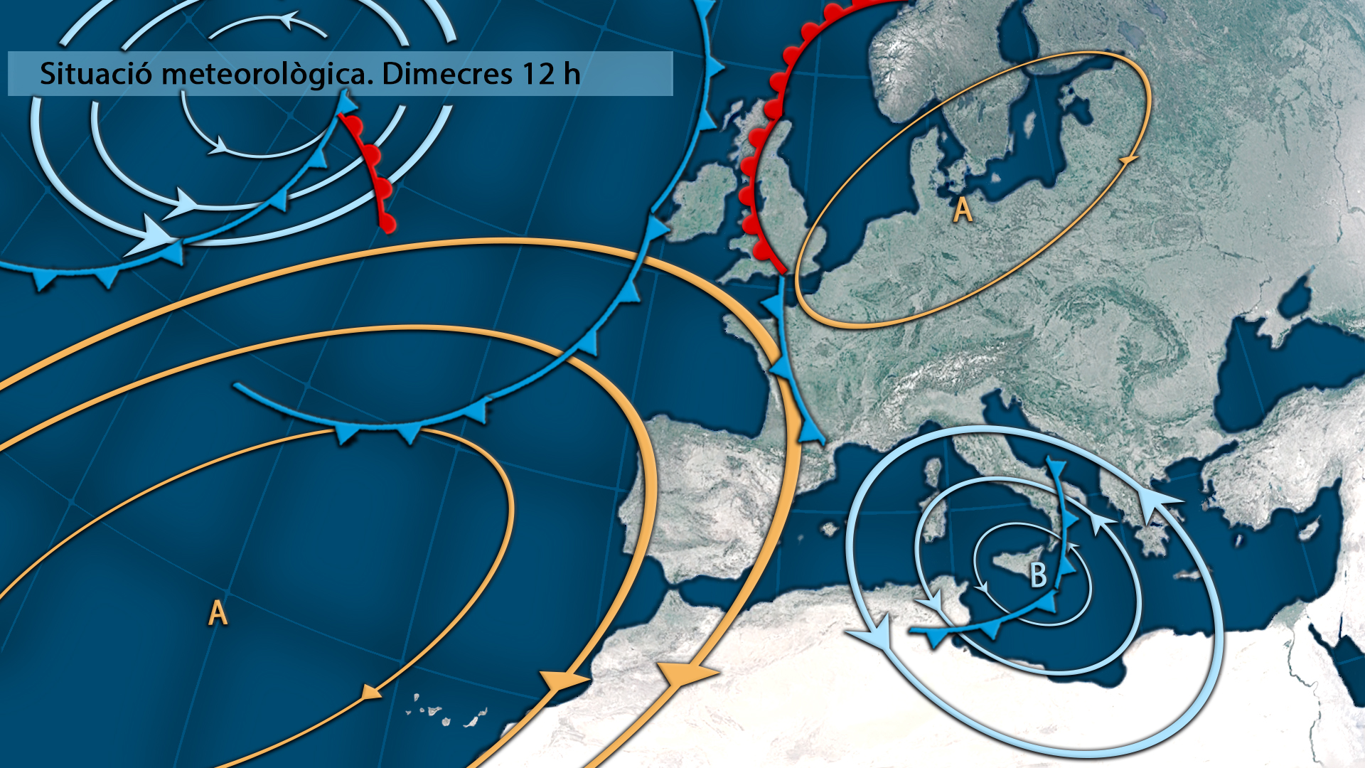 A poc a poc es consolida l’anticicló atlàntic i la borrasca es retira cap a l’est la qual cos vol dir que el vemt anirà afluixant tot i que demà encara tindrem avís per vent al nord ben bé fins a migdia o primera hora de la vesprada