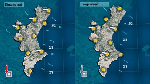 A més d’estabilitat hem d’anunciar un ascens de les temperatures que portarà les màximes prop dels 20 graus al centre i a la costa perquè fins a migdia encara es deixarà sentir el vent de ponent.
