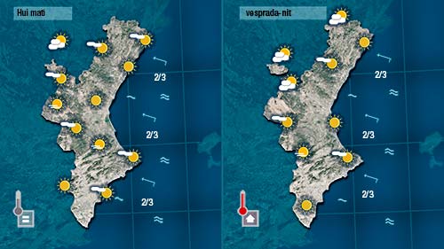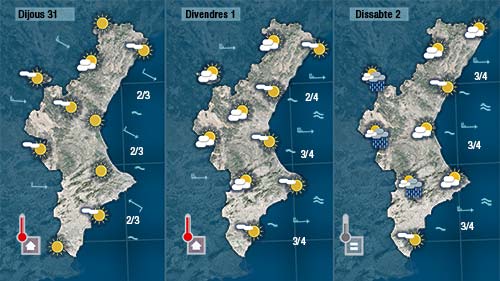 Dijous començarem a notar com els vents de component oest (mestral i ponent) es deixen sentir a bona part de la Comunitat i com comencen a fer pujar les temperatures.