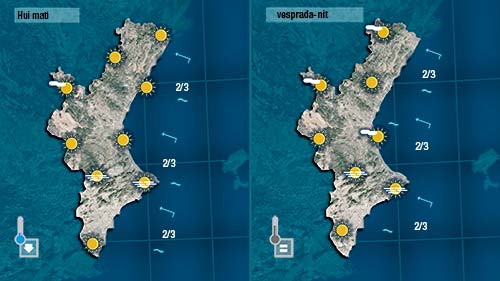 Però, anem a poc a poc. De momet hui ens espera un dia de molta calma, de calma total amb vents fluixos de xaloc i temperatures que tot i haver baixat per la nit al centre del dia quedaran molt paregudes les d’ahir.