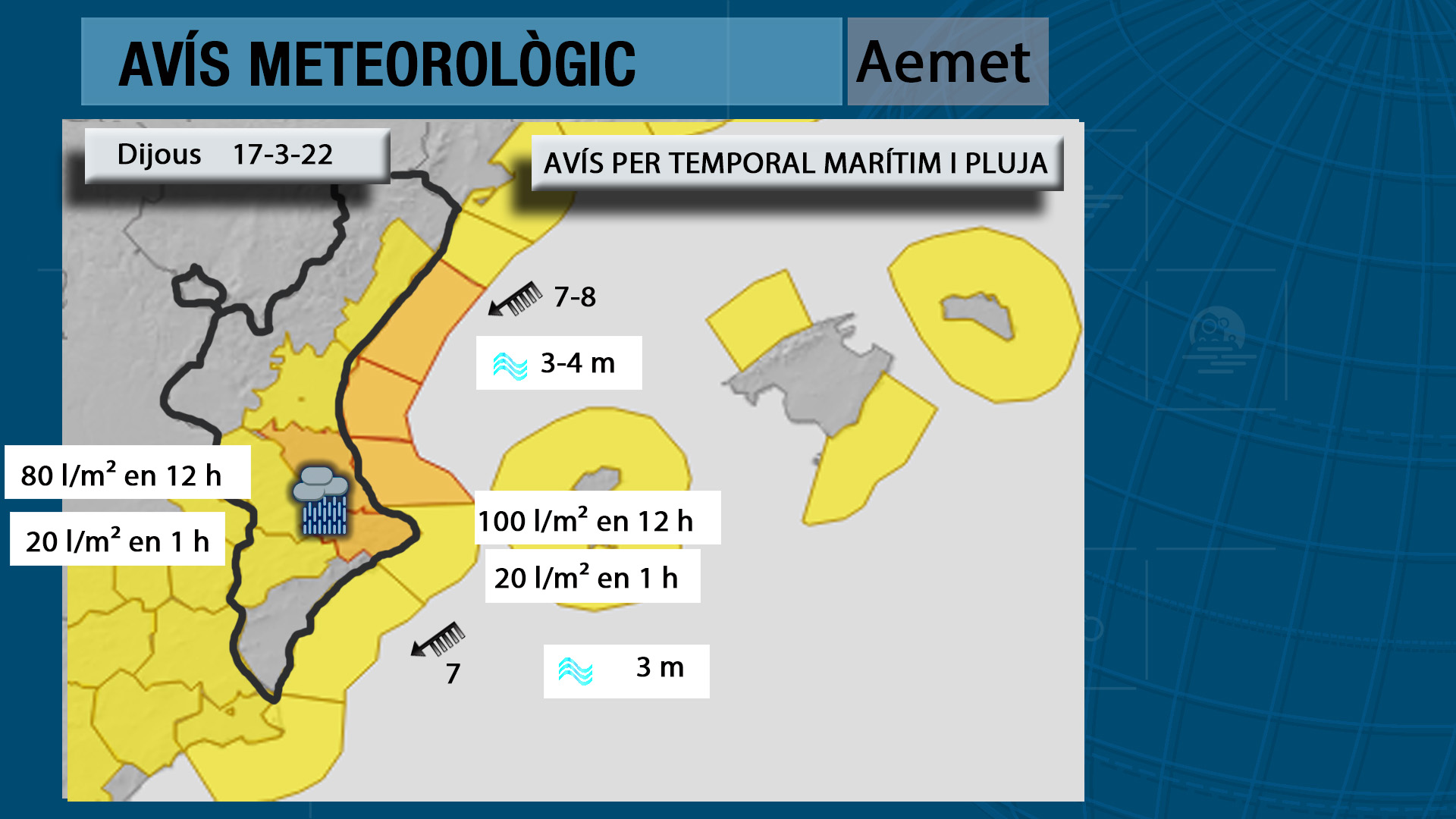 Demà divendres les precipitacions més intenses es desplaçaran de nou cap al sud on més fort bufarà el gregal i on la mar es mantindrà més alterada. Pot ser al nord les pluges siguen més dèbils i fins i tot els municipis de Castelló que fan falles tindran unes hores d’oratge més tranquil.