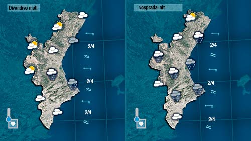 Demà divendres les precipitacions cal esperar-les de nou cap a la costa del centre i sud de València encara que el cel estarà cobert a la major part de la Comunitat. De vesprada podran endinsar-se cap a l’interior però en principi seran de caractèr dèbil.