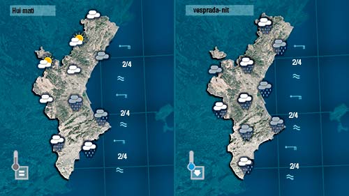 No podem baixar la guardia perquè hui es manté la inestabilitat sobretot a la mitad sud de la Comunitat on en zones pròximes al litoral pot tornar a ploure amb intensitat moderada o forta. De vesprada les precipitacions podran ser més generals.