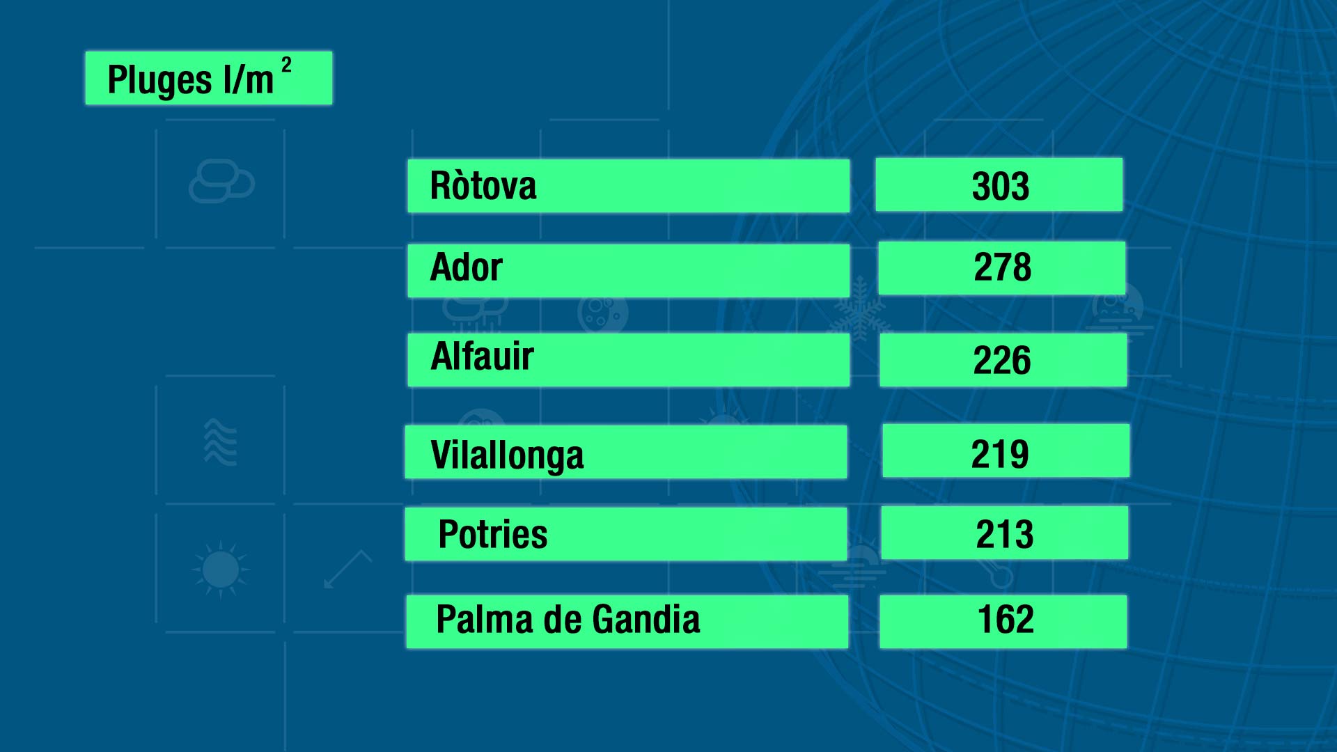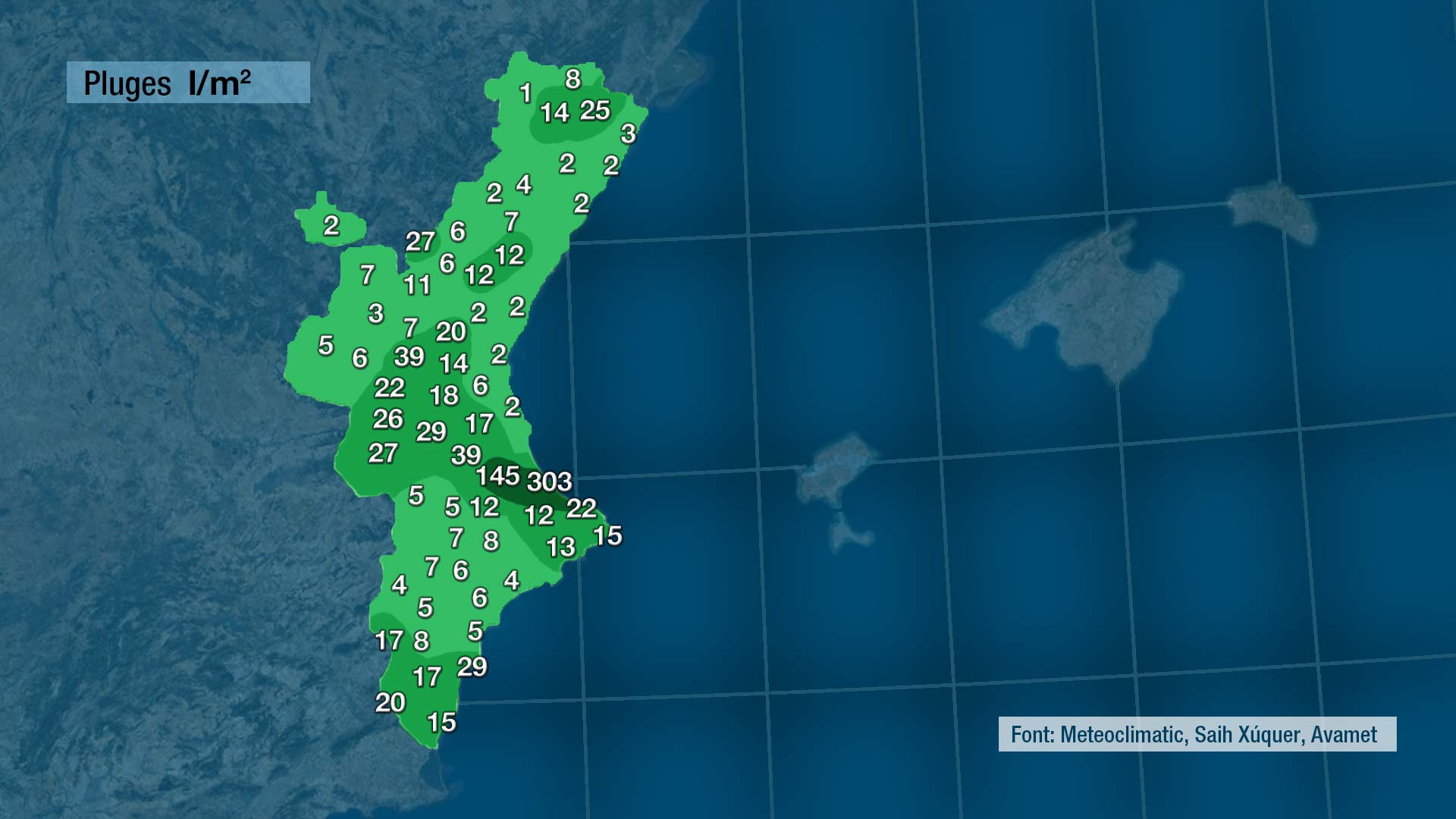 Quan estavem esperant que plogurera i apenes es registraven precipitacions dèbils, inferiors als 5 litres per metre quadrat, ahir de vespradatinguerem un d’eixos episodis de pluja que de tant en tant sacsegen la Comunitat Valenciana. Va ser La Safor la zona més afectada i no va ploure per igual a tota la Comarca. A la zona més pròxima a les muntanyes, a les rodalies d’Sdor, Palma de Gandia, la Marxuquera els registres han superat els 300 litres mentre que a pocs quilòmetres, a Gandia, el pluviòmetre no arribava a marcar més de 12 litres.