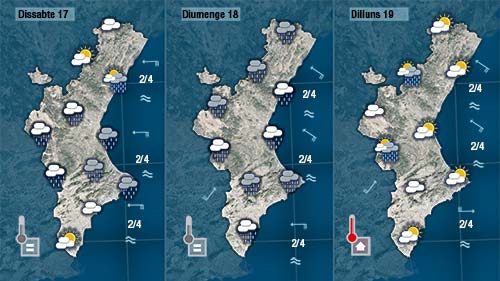 Fins dilluns al matí haurem d’estar molt atents a les previsions i a l’evolució de l’oratge perquè pot ser dissabte només ploga a rogles i també, només a rogles, podrà ploure amb intensitat però diumenge serà un dia ‘delicat’ amb precipitacions que agranaran la Comunitat de sud a nord i podrien tornar a ser molt intenses (durant el matí a la mitad sud del territori, i a partir de la vesprada i durant la nit al nord).