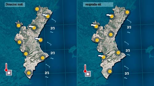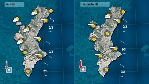Demà dimecres farà tanta calor o més que hui. Vorem pocs núvols. Només algins baixos de matía a la costa i de vesprada a les muntanyes de l’interior.