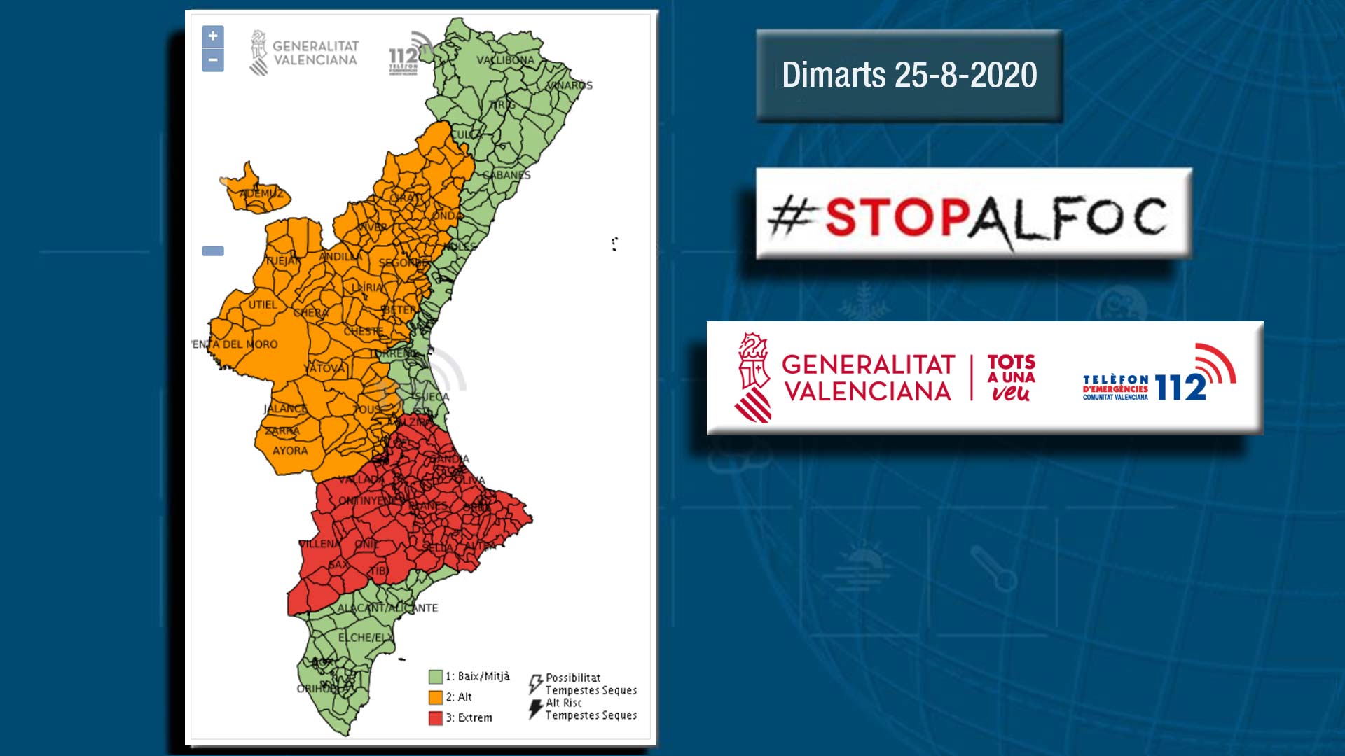 Les temperatures pujaran lleugerament junt a la costa, on l’ambient encara serà humit i bascós. Al centre i per l’interior la pujada de temperatures portarà de nou el mercuri dels termòmetres a valors pròxims als 40 graus i això farà que puge els risc d’incendis forestals.
