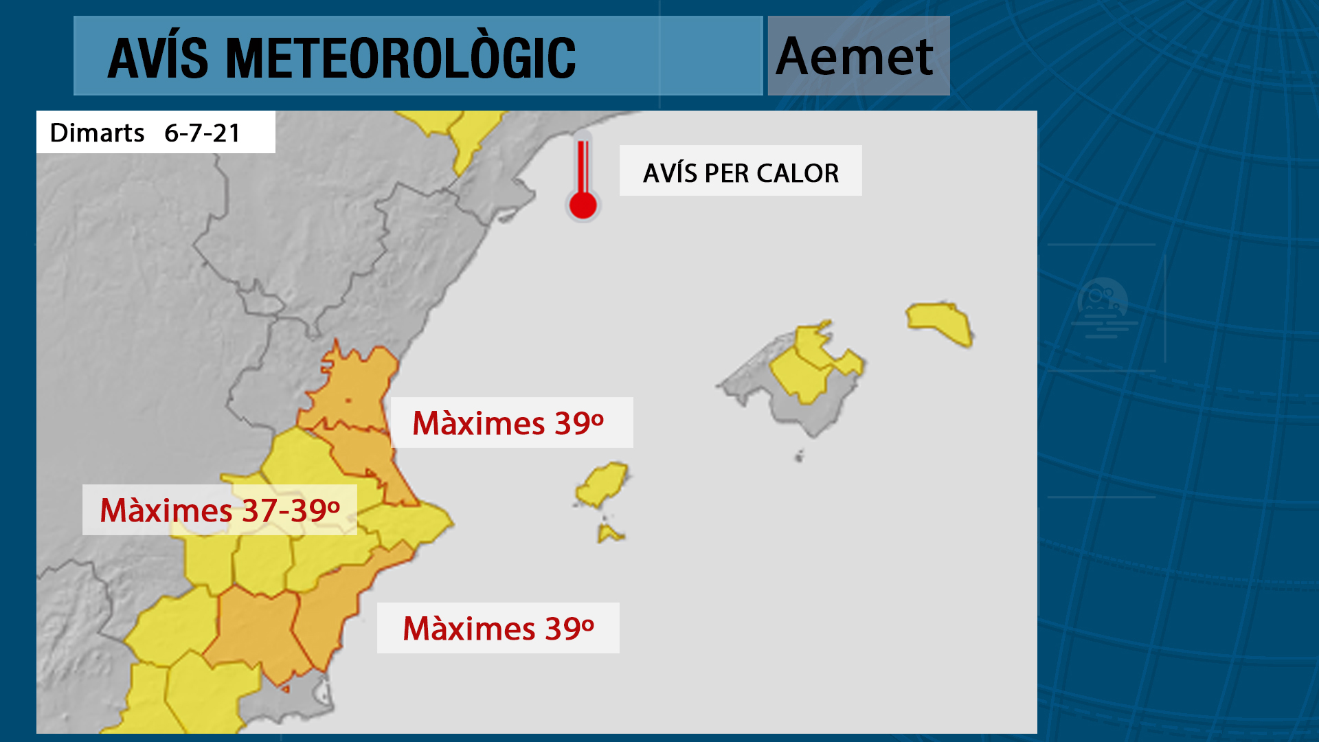 De fet estem en avís taronja al centre i sud de València, i al sud d’Alacant on al prelitoral i a la costa els termòmetres s’aproparan de nou als 40 graus