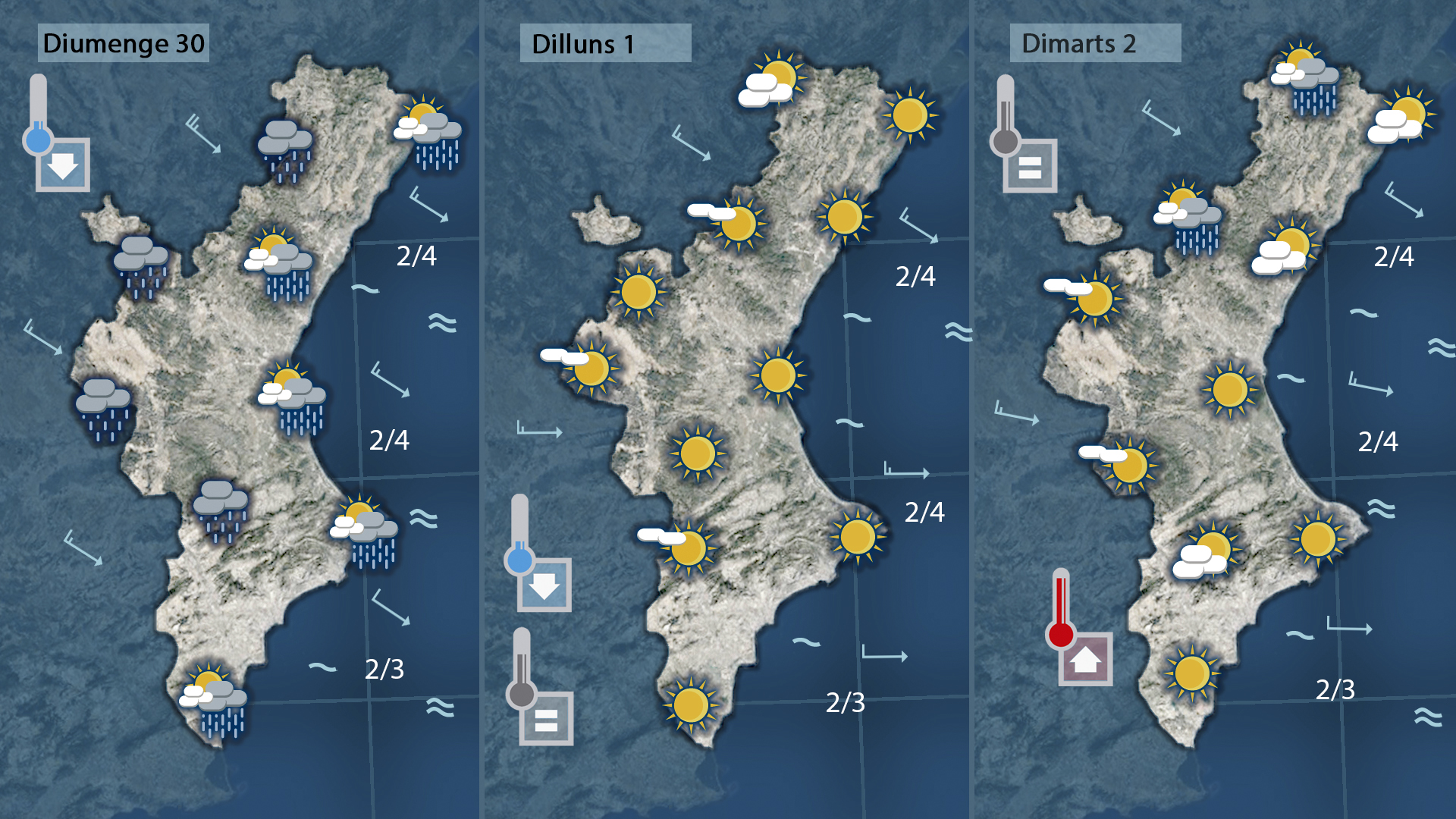 Hui es el primer dia de la setmana que ens alcem sense avisos meteorològics. El vent bufarà de mestyral al nord però serà fluix i al centre i al sud de xaloc.