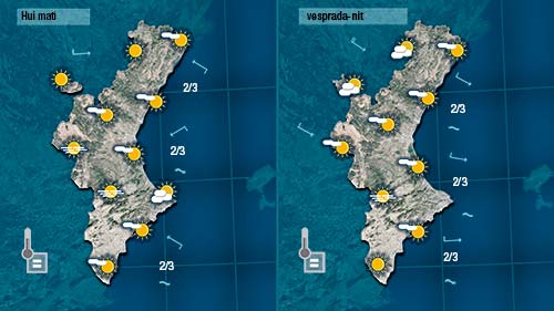 De l’oratge de hui poc a destacar. Anticicló i ambient boirós de matí i augment de la nuvolositat de cara a la nit quan el vent comence a deixar-se sentir de component oest.