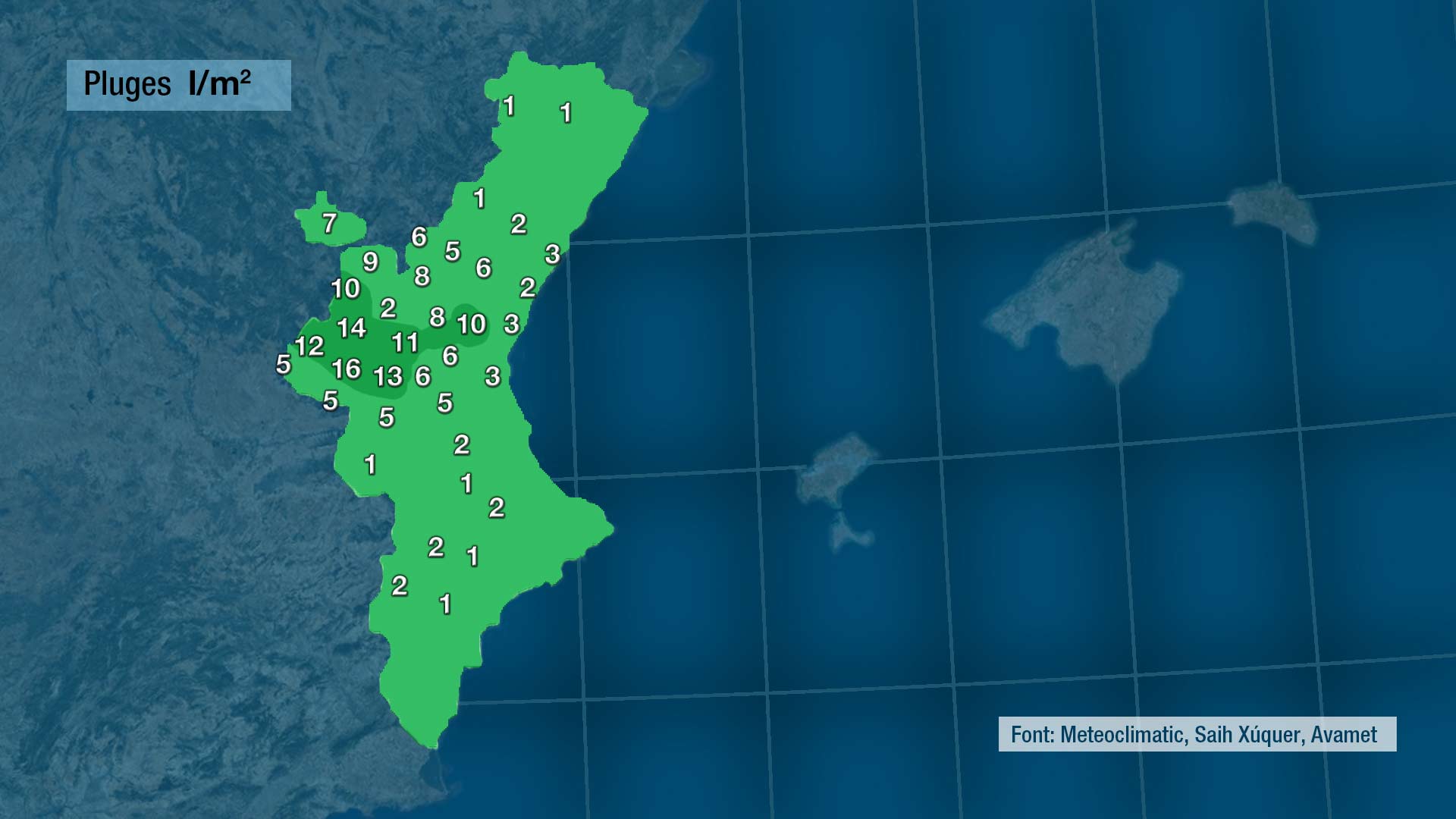 Hui, tot i haver començat el dia amb sol no descartem que de nou, esta vesprada, puguen registrar-se precipitacions de distribució i intensitat molt irregular avançant des de l’interior cap a la costa. Les temperatures es mantindran sense canvis o baixaran lleugerament