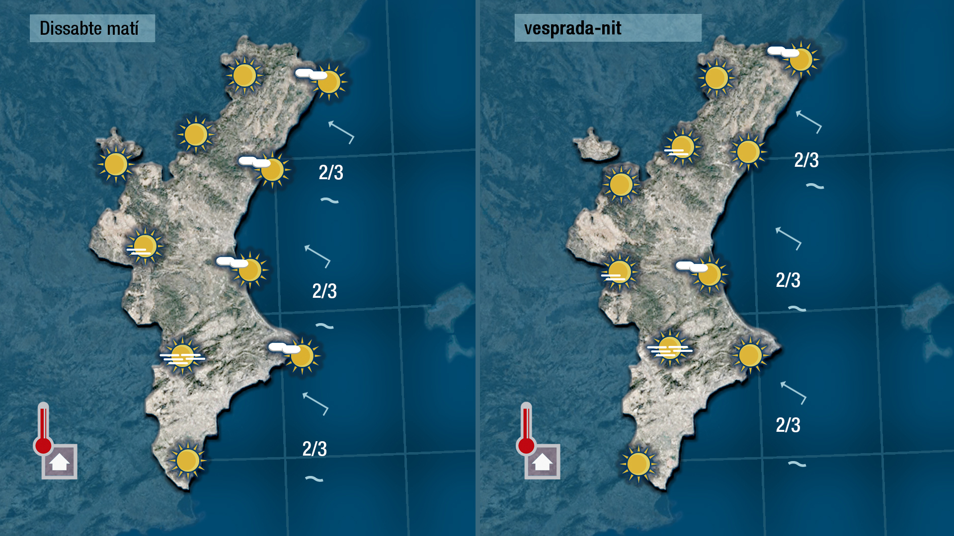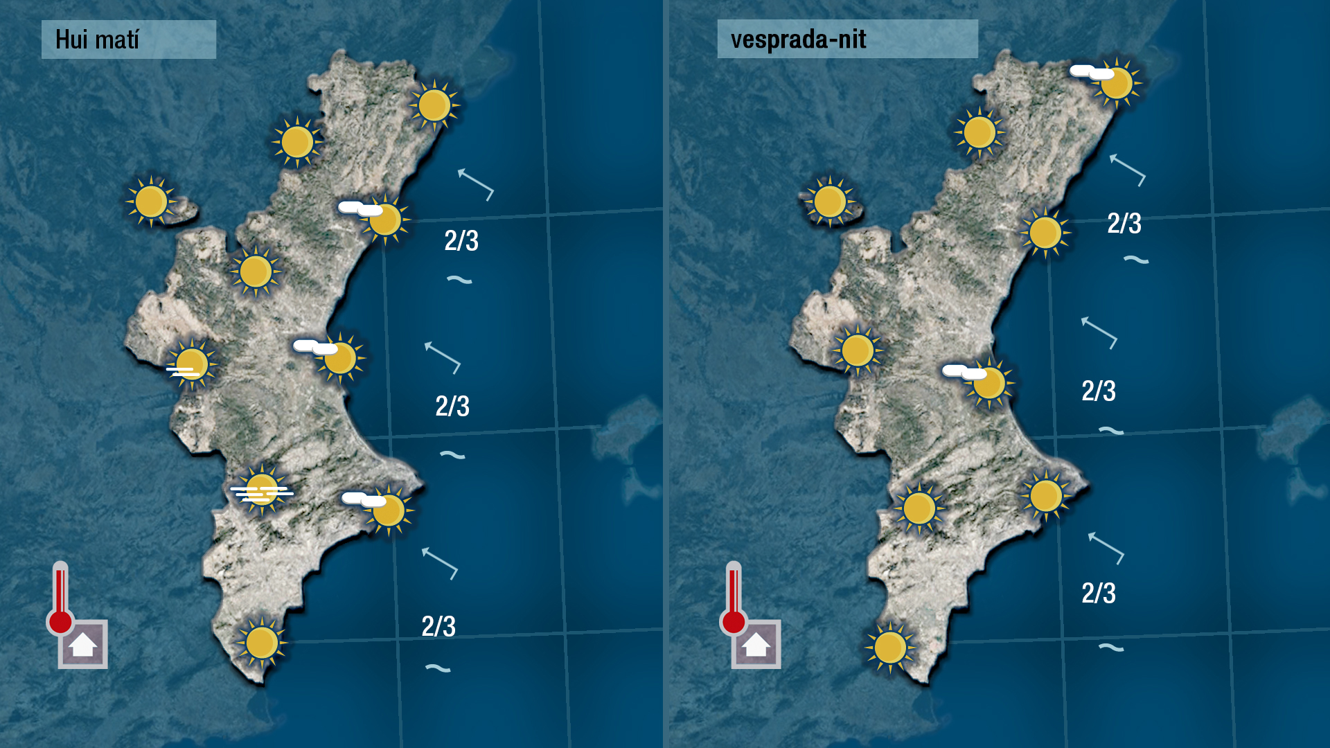 Tornarem a disfrutar hui d’un dia assolellat. Només cal tindre en compte els boires que puguen haver-se format durant la nit en planes i zones fondes. Les temperatures tornaran a fer-nos anar en mànega de camisa des de migdia fins a la posta del sol.
