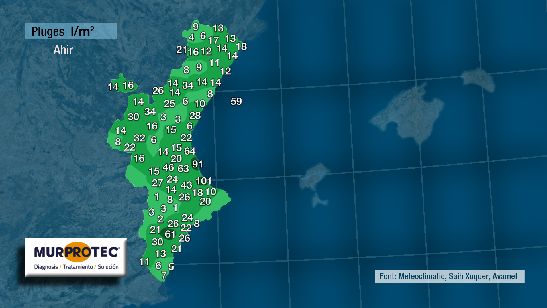 Cal destacar que a rogles la pluja ca ser intensa, i lamentar la pedra caiguda en punts del Vinalopó Mitjà. Registres d’entre 20 i 30 litres però acompanyats de pedra de gran tamany.