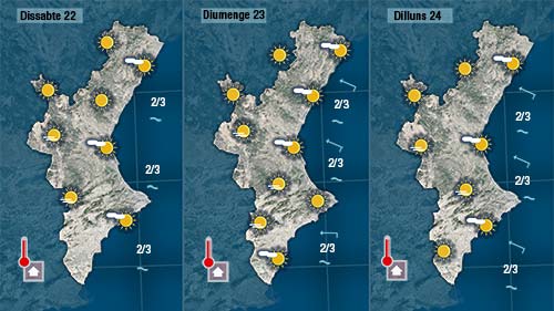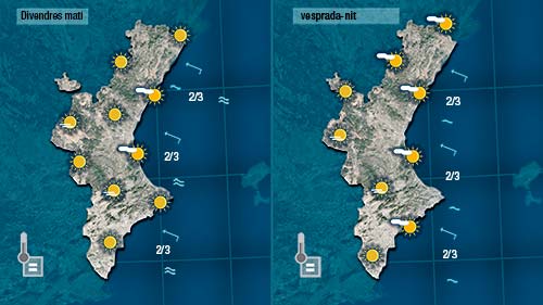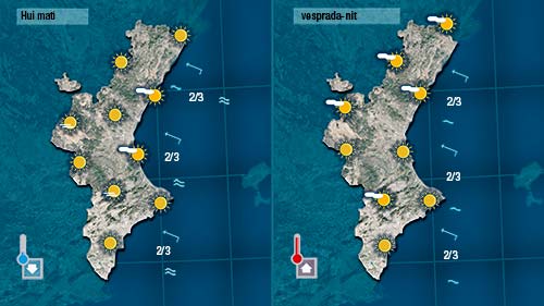 Pots canvis tindrem demà. Es formaran boires a les planes de l’interior i a les zones fondes, i fins a mig matí podrem tindre núvols en punts de la costa. Les temperatures no patiran canvis.