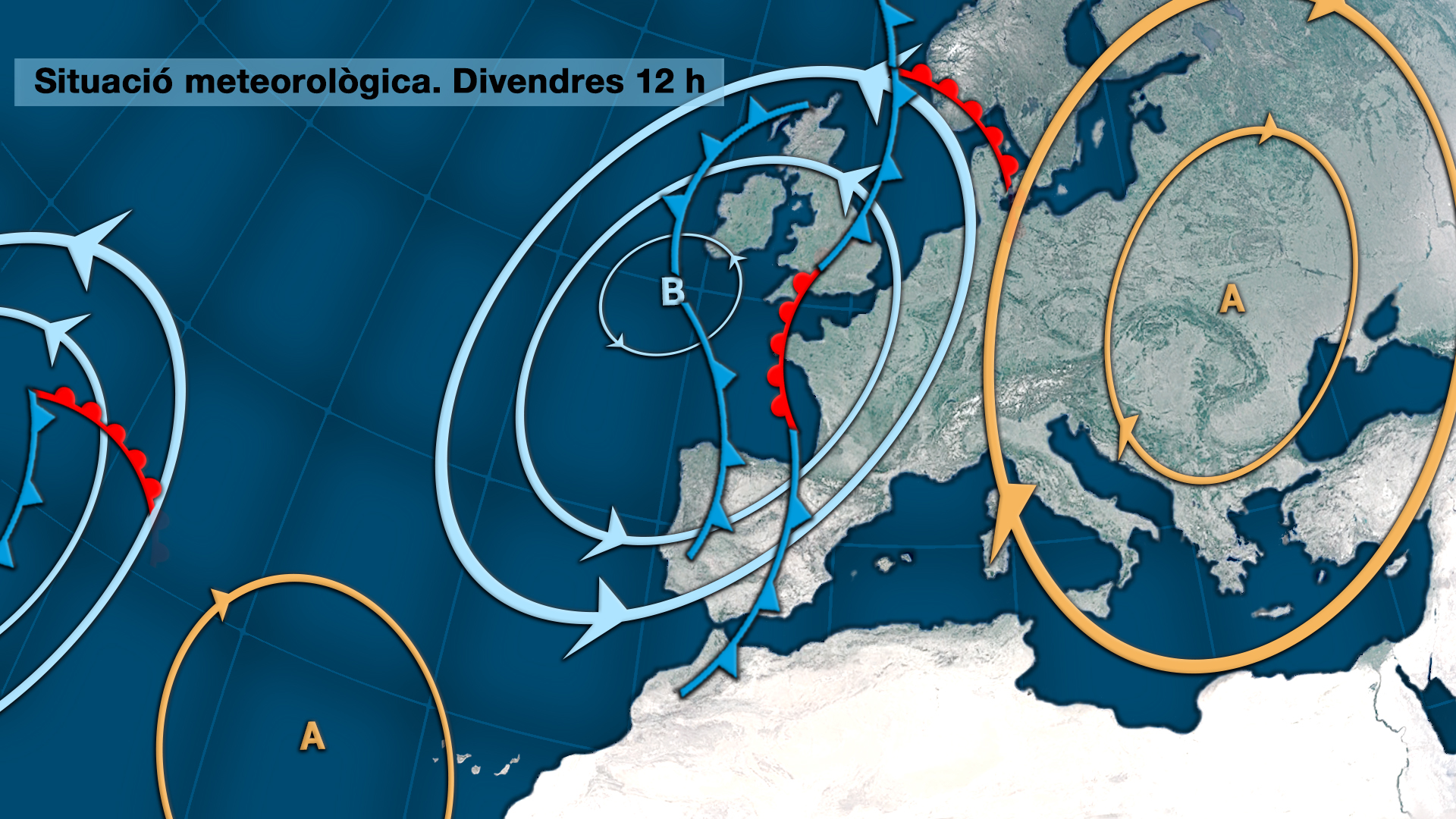 A la costa el vent continuarà bufant de xaloc però al sud i per l’interior bufarà del sud-oest per influència de les baixes pressions que podem identificar a l’Atlàntic.