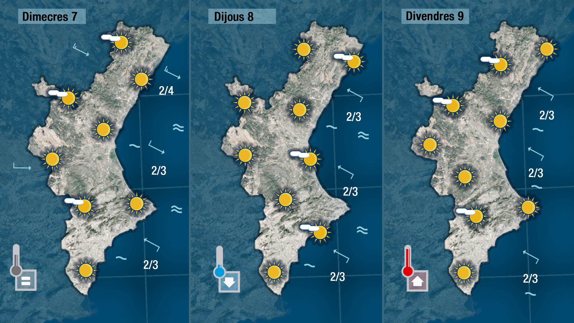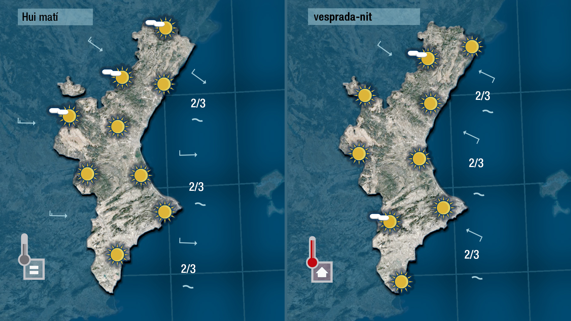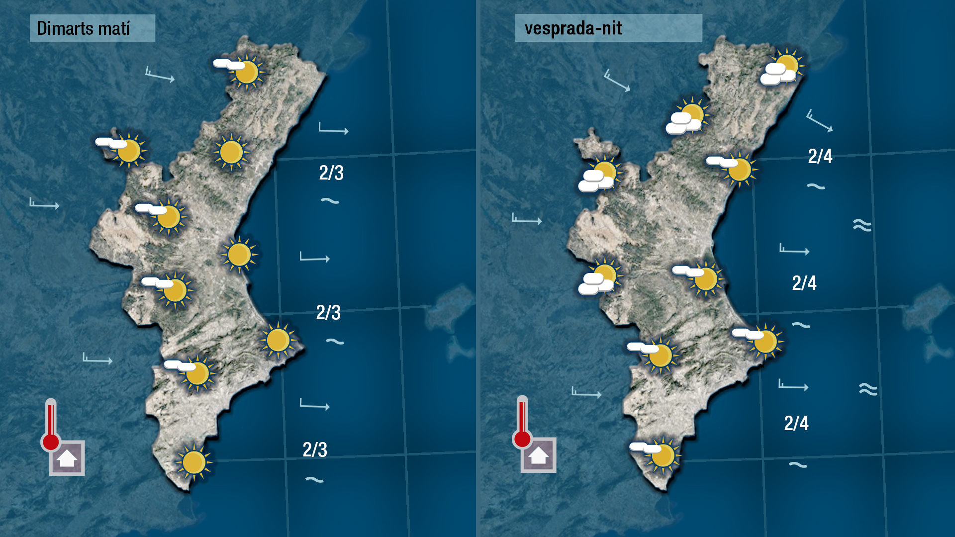 Demà dimarts el vent bufarà fluix de ponent i de seguida tindrà repercusió en les temperatures que pujaran fins quedar aprop dels 30 graus. Vorem pocs núvols al cel. Pot ser de vesprada siguen un poc més abundants per l’interior.