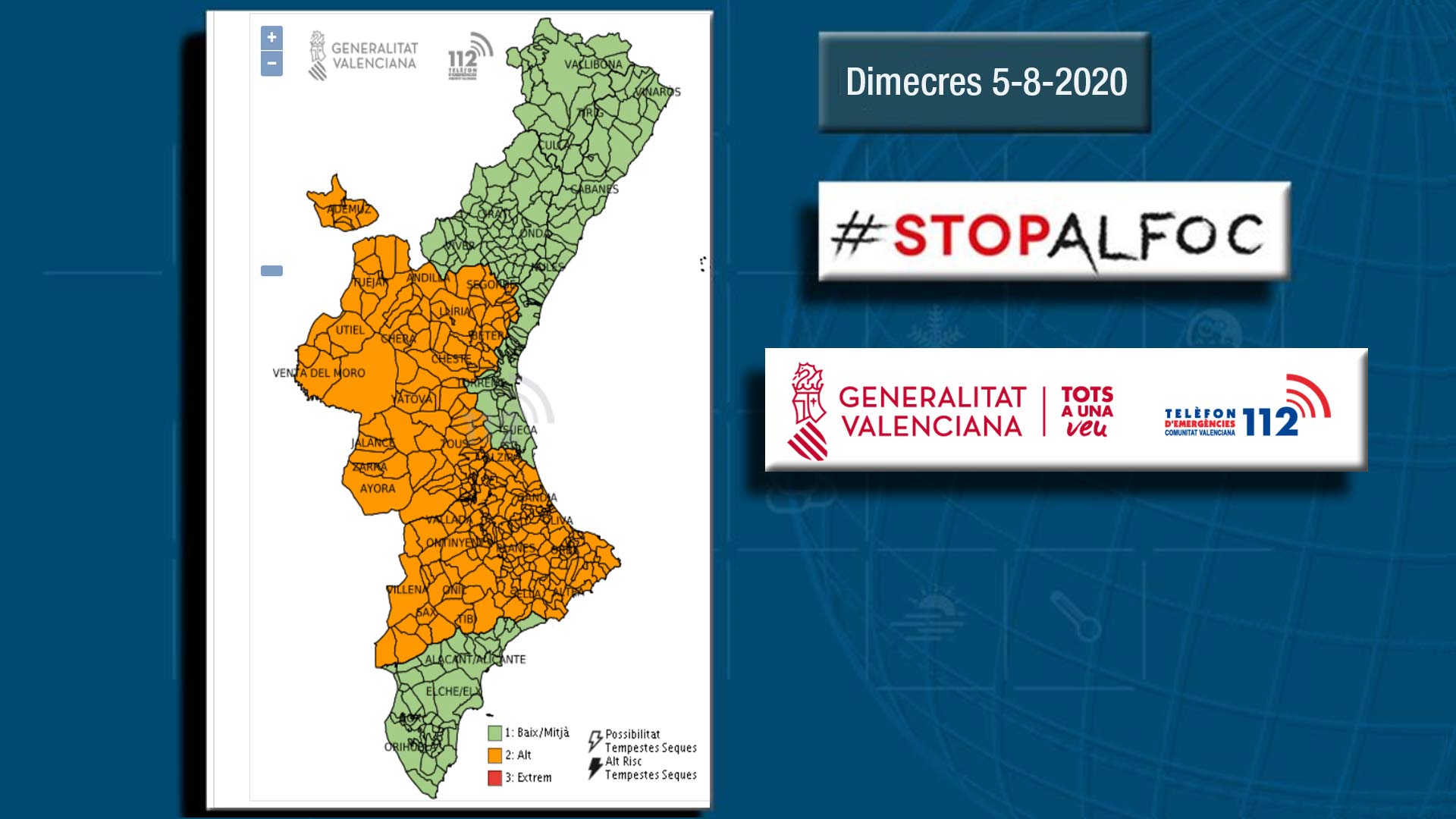 Ahir de vesprada ja pujaren un poc, la nit ha sigut més calorosa i hui tornaran a pujar les temperatures un parell de graus fent pujar el risc d’incendis forestals  ala major part de la Comunitat.