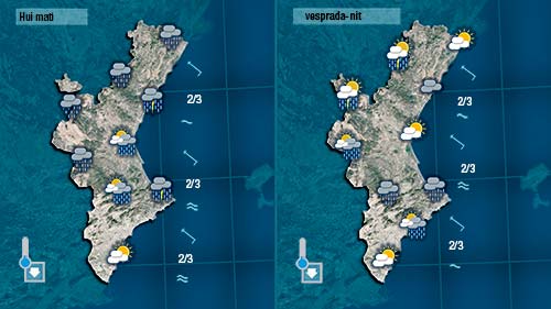 El de hui sembla més un dia de tardor que d’estiu. Un dia perfecte per als que estan treballant…i no tan bo per aquells que estiguen de vacances perquè tot i que a la vesprada escamparà un poc encara podrna registrar-se precipitacions que de forma puntual podran ser en forma de tempesta.