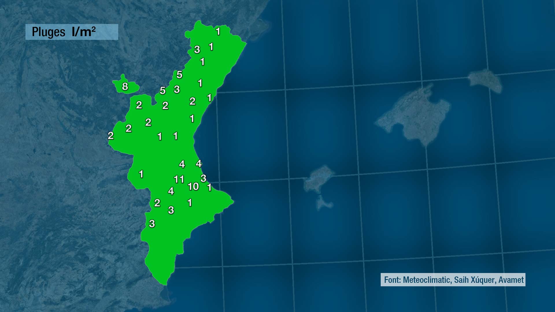 Hui, tot i haver començat amb el cel carregat i ambb ruixats acabarà sent prou assolellat a la major part del territori, però esta vesprada tornaran a créixer núvols d’evolució per l’interior que de forma puntual deixaran ruixats i fins i tot alguna tronada. Les temperatures pujaran dos o tres graus respecte les d’ahir.