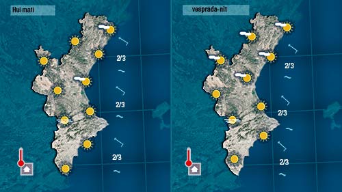 Dijous les temperatures s’acoataran als 30 graus a alguns observatoris del centre i interior de la Comunitat, on a més de no arribar les brises notaran un poc de llebeig.