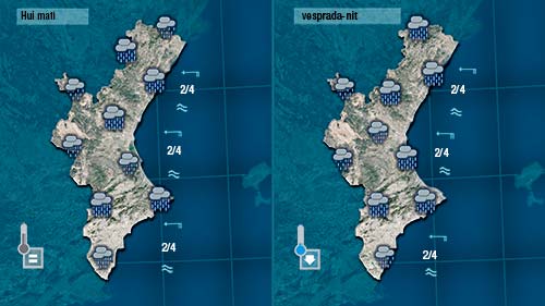 Les precipitacions de hui seran generals i localment moderades. No descarte que la neu puga deixar-se vore a les muntanyes del nord per damunt del 1.200 metres.