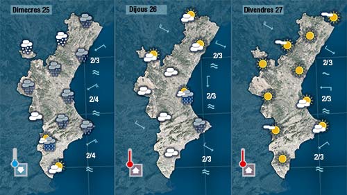 Les primeres hores de dijous encara tindrem el cel ennuvolat i podrà caure alguna gota però a partir de migdia s’imposarà el sol i les recuperaran les temperatures lleugerament.