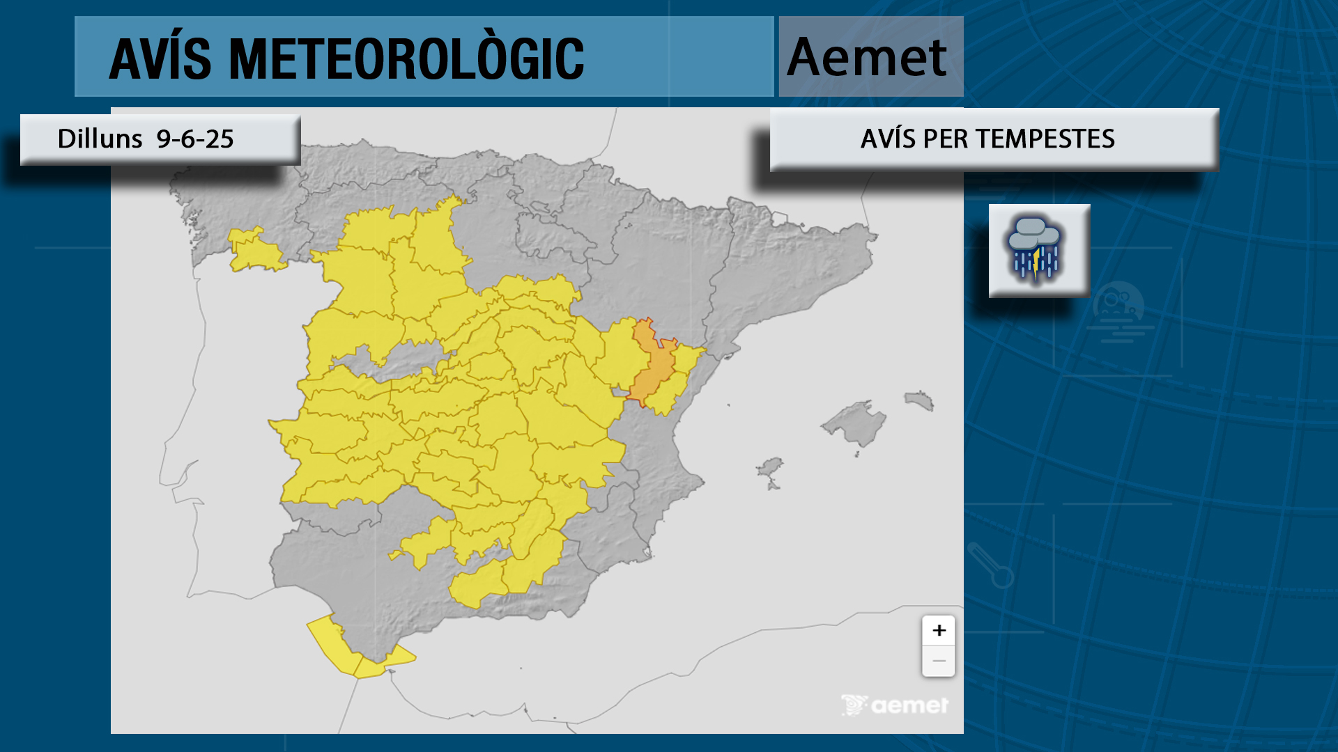 Comencem la setmana amb avís groc al nord per probabilitat de ruixats i tromnades localment intensos que poden vindre acompanyants de pedra i vent