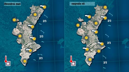 Demà divendres tindrem un oratge tan estable com el de hui però encara més calorós. Pot ser les mínime sno patiran massa variacions però les màximes podran pujar un parell de graus.