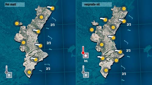 Hui l’únic canvi que esperem serà l’ascens de les temperatures. Es notarà més al centre i per l’interior però també tindrem més calor a la costa.