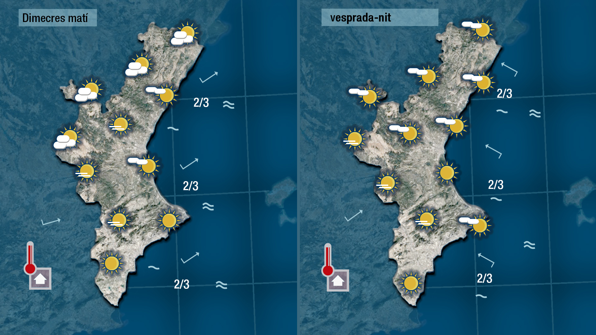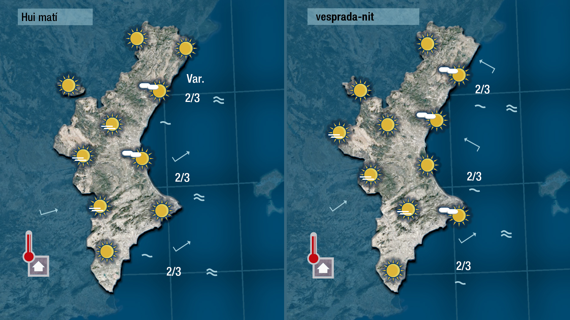 El vent bufarà fluix de ponent però a migdia podria deixar-se sentir el xaloc en punts de la costa frentant l’ascens tèrmic.