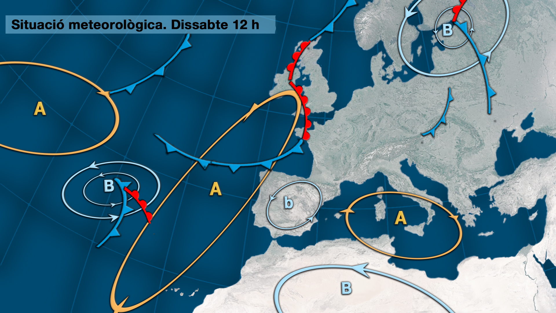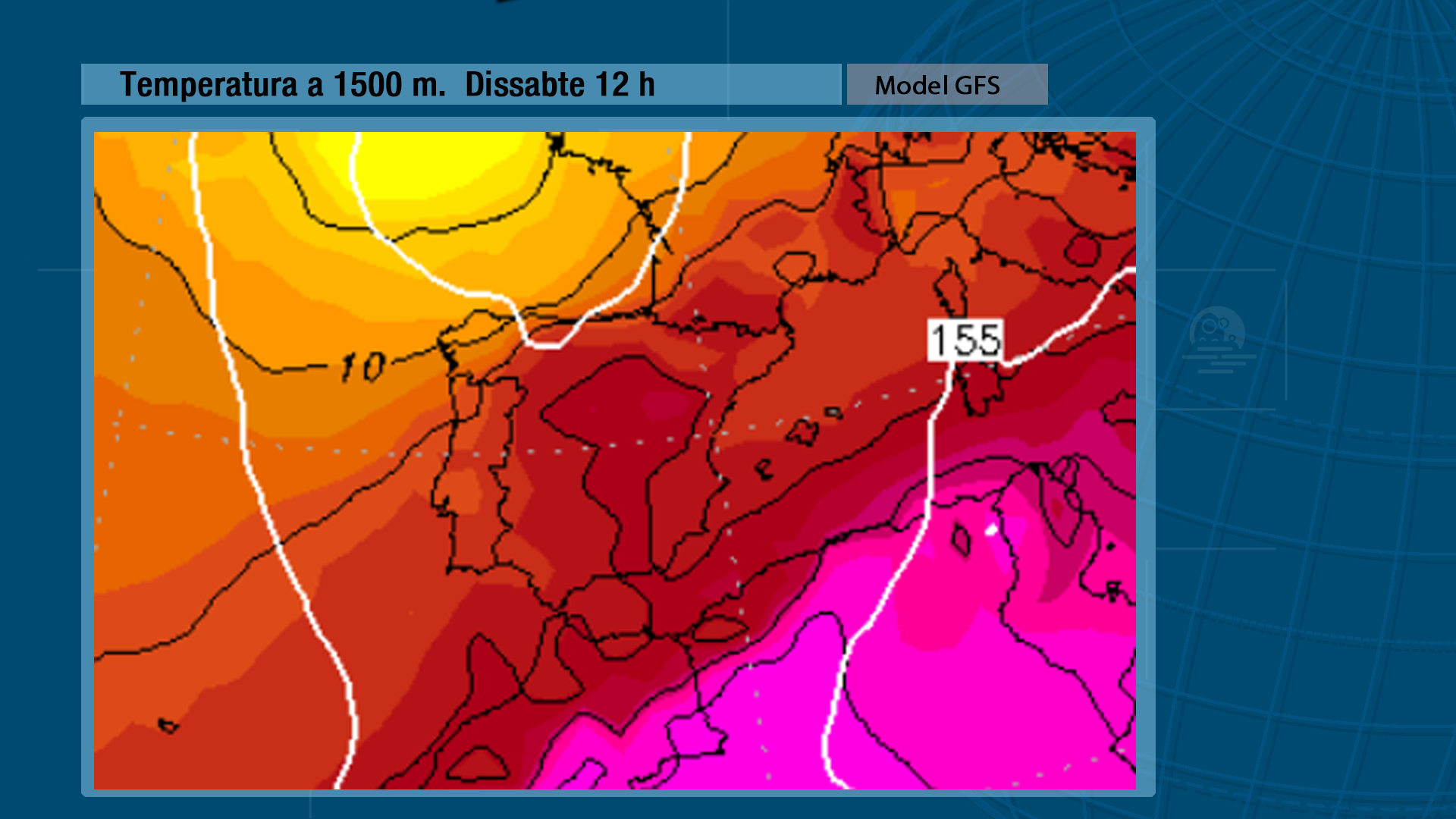L’esquema de la situació meteorològica ens dona una situació poc definida, típica d’estiu, amb baixes pressions relatives al centre peninsular que faran que el vent ens arribe de llebeig impulsant cap a la Comunitat Valenciana una massa d’aire que anirà sent cada volta més càlida conforme avance el cap de setmana
