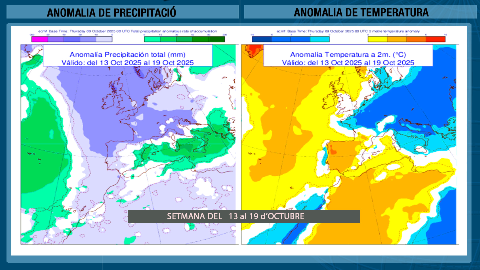 I les prvisions continuen donant-nos una nova setmana de pluja i d’ambient fresc. La previsisó setmanal d’Aemet ho té clar: una setmana plujosa i fresca a bona part del litoral mediterrani, i poca pluja i temperatures per damunt de les habituals per l’època conforme es desplacem cap al centre i cap a l’oest