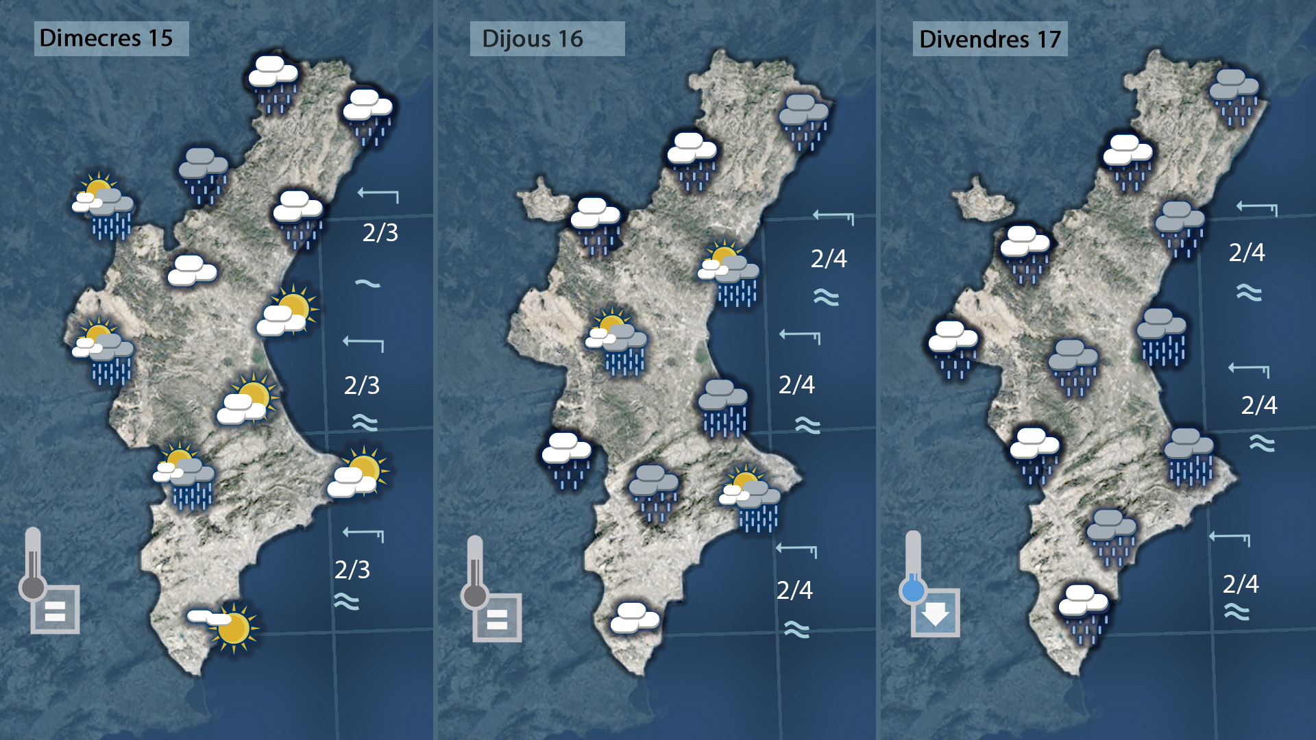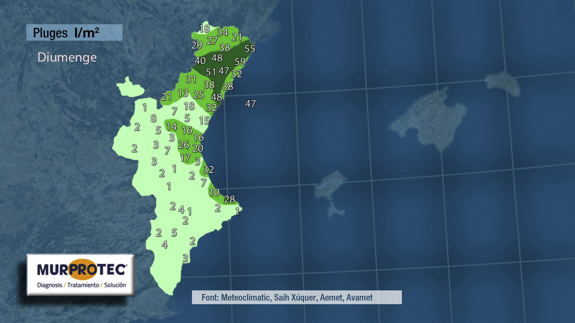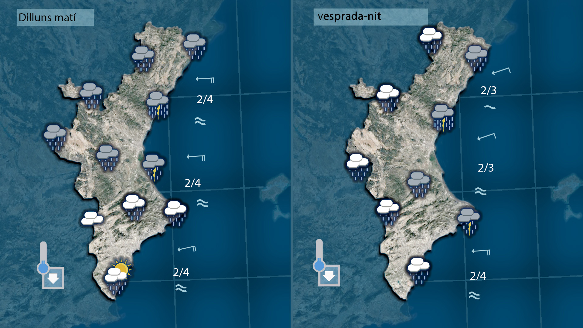 Fins dijous l’oratge serà inestable però caldrà esperar que el creixement de nuvoldes d’evolució vespertines determinen on i quant ploure després d’un matí assolellat o amb alternança de núvols i clars, però si es compleixen les previsions a partir de dijous a la nit i el cap de setmana torna el llevant i les pluges serien de nou generals i intenses a la major part de la Comunitat…un nou temperal sense temps d’haver-nos recuperat del que hem deixar enrere a poc a poc.