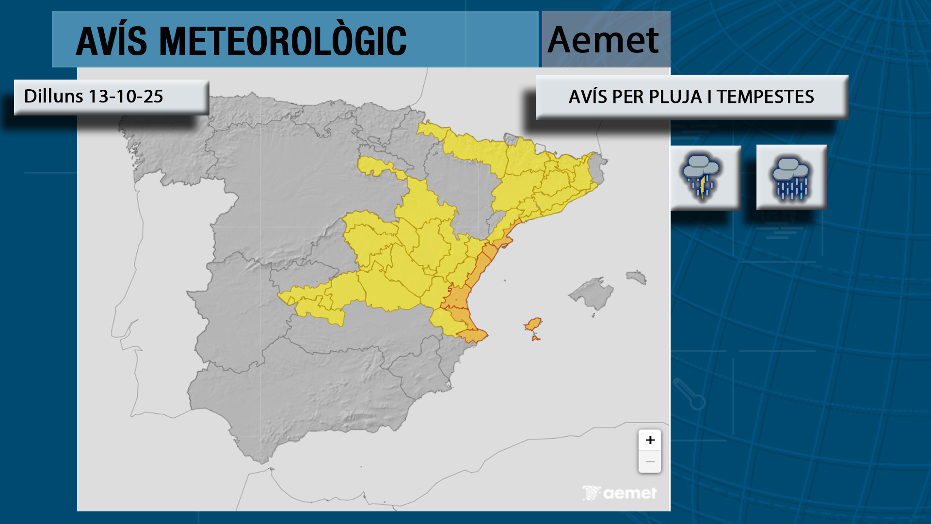 No obstant això els avisos encara afecten hui la major part del territori: taronja a la costa i groc per l’interior