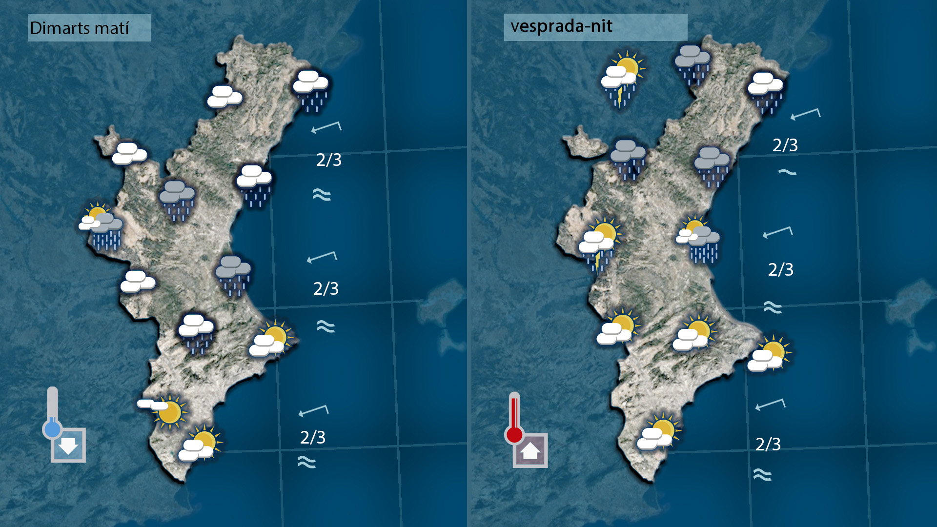 Ahir vam tindre un dia de treva i hui comencem la setmana de nou pendents de l’oratge. Amb núvols que tornaran a cobrir el cel i a descarregar sobre bona part de la Comunitat tot i que les precipitacions seran més probables a València i a Castelló.