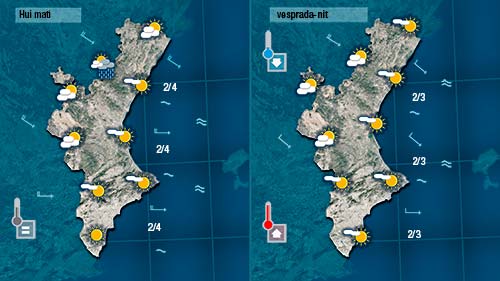 El de hui serà un dia quasi primaveral. Han pujat lleugerament les temperatures mínimes i també ho faran les màximes perquè en bufar el vent de ponent els termòmetres s’enfilaran al voltant o per damunt dels 20 graus.