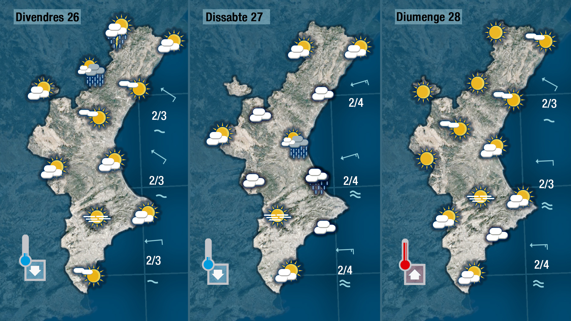 Divendres farà un poc més de fresca perquè el cel estarà més cobert i fins i tot podriem tindre les primeres tronades d ela primavera al nord de vesprada.