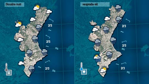 Hui seran dèbils i disperses. Tindrem el cel més cobert, ennuvolat en algunes zones, però les pluges que puguen registrar-se seran poc importants.