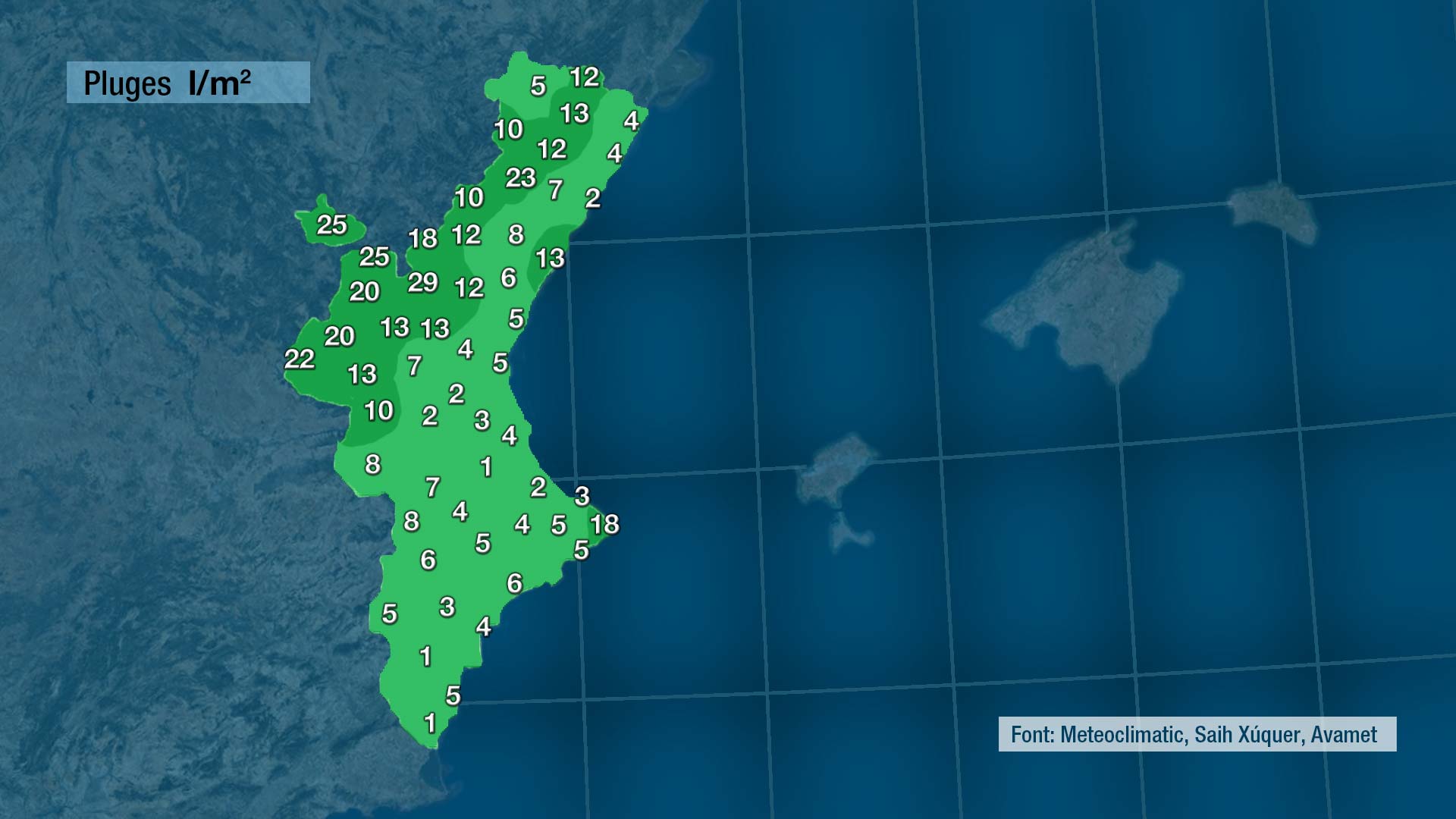 Este és el resum de les pluges acumulades en les últimes 24 hores