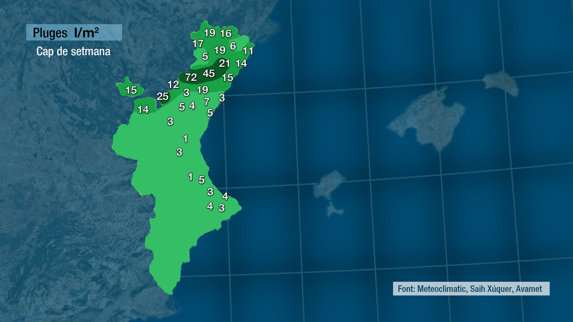 Ha plogut on estava previst i com estava previst. A més existia perill de pedra i també va arribar fent mal a rogles en zones del nord de Castelló., A Els Ports i la Tinença.