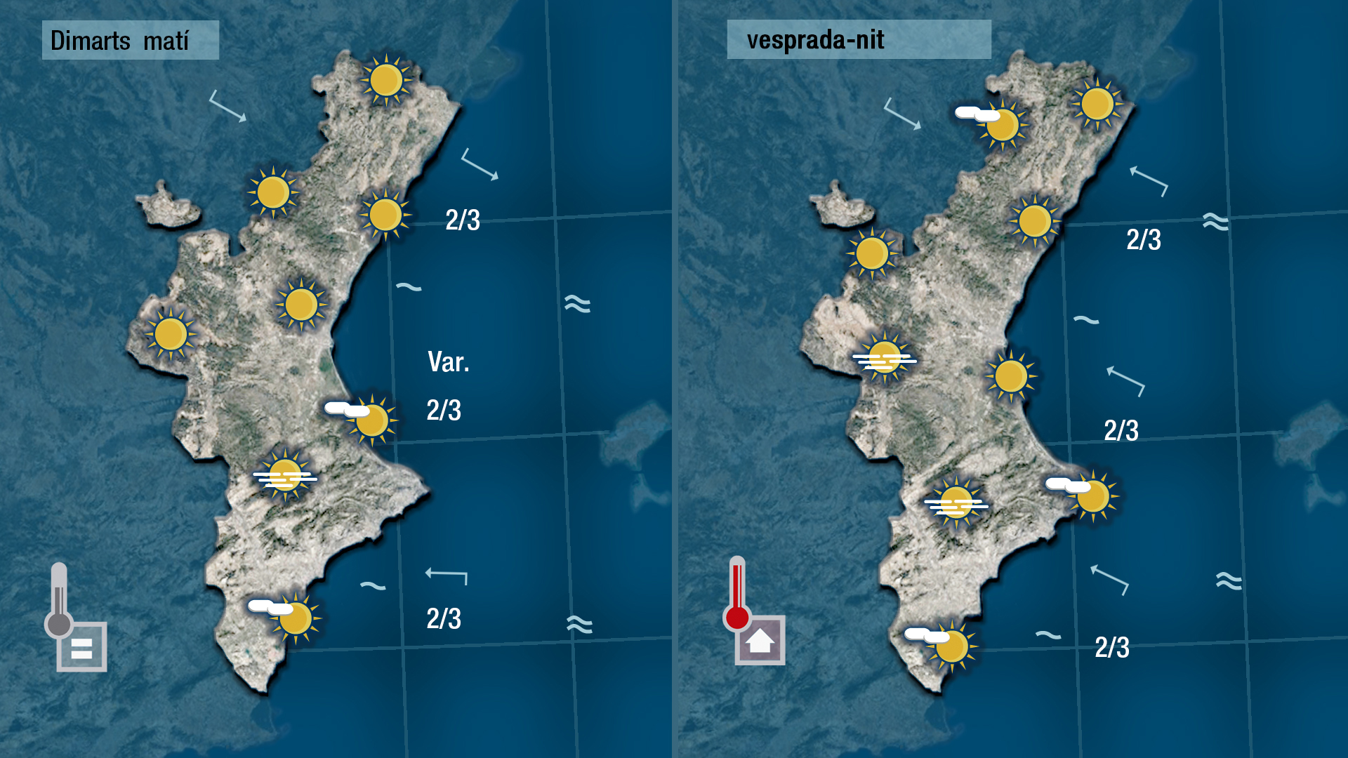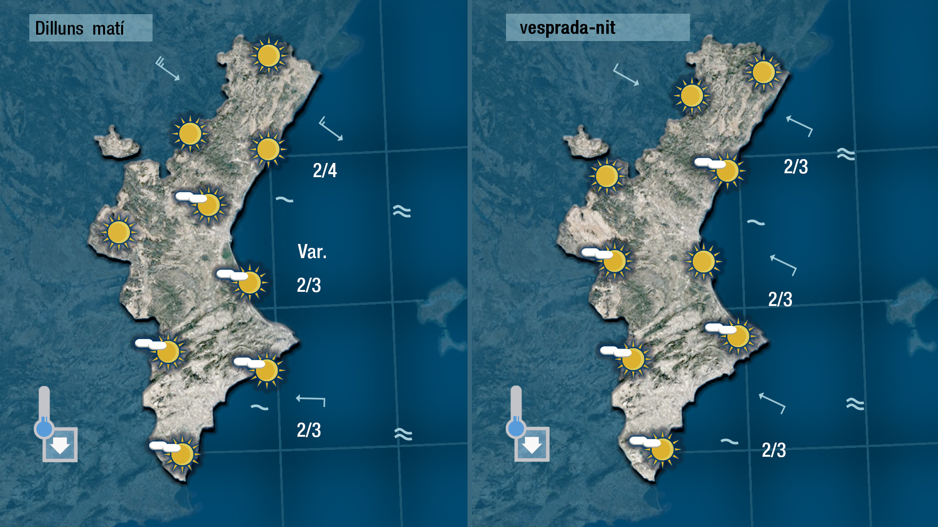 Demà dimarts tampoc espere canvis, L’ambient serà fresc a primera hora i les temperatures màximes quedaran com les de hui o un poc més altes (pujaran un o dos graus)