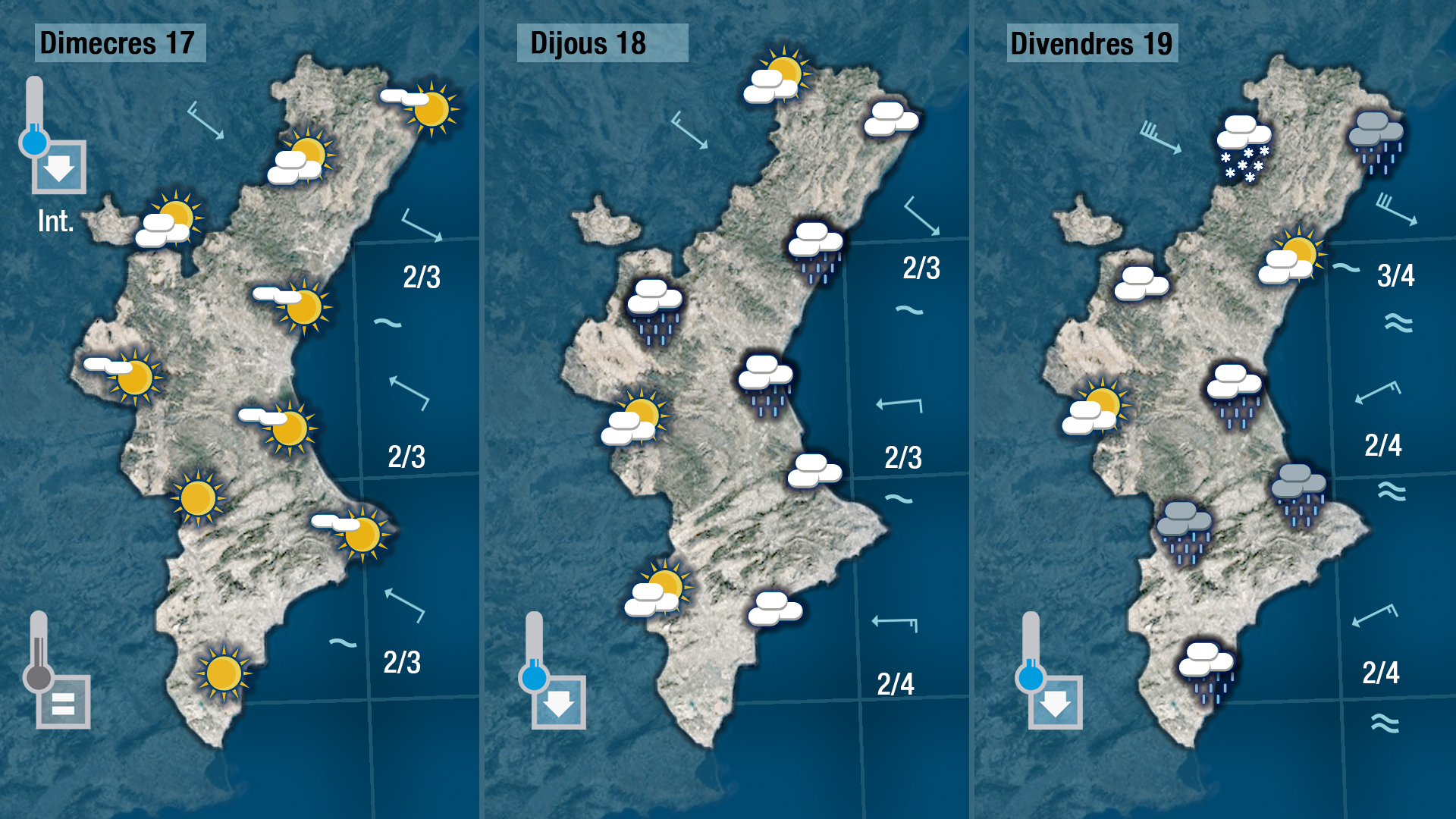 Dimecres es deixarà sentir de nou el mestral al nord amb ratxes moderades i més fresc, pot ser avisat-nos dels canvis que tindrem la recta final de la setmana, la recta final de l’hivern. Caldrà seguir de prop l’evolució de les previsions perquè entre dijous i divendres el fred es farà ben acusat i l’oratge més intestable.