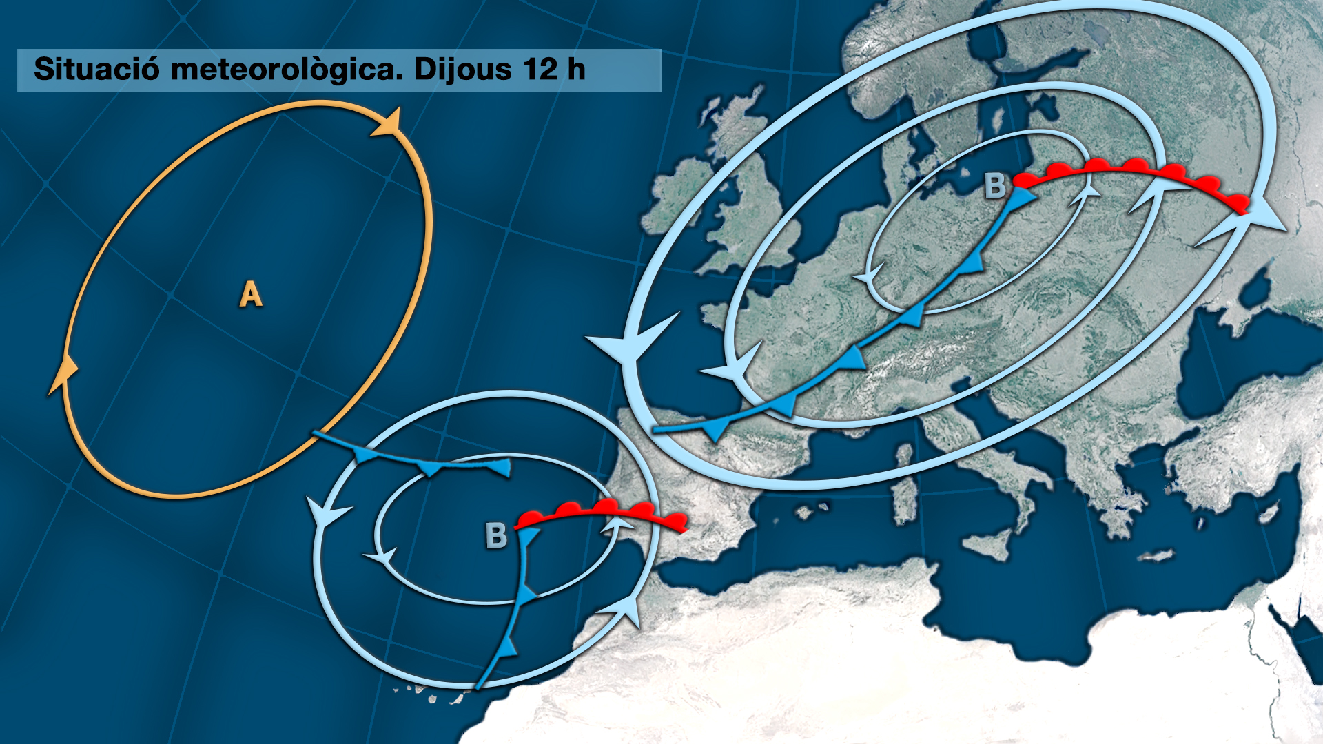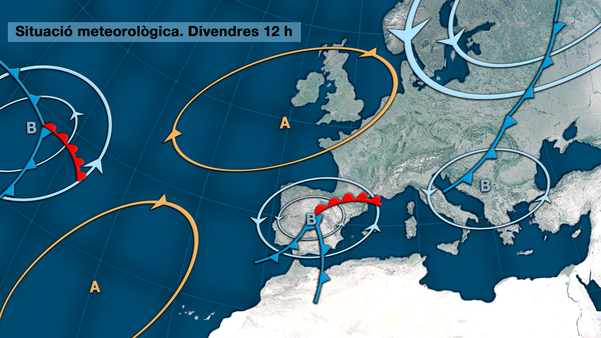 L’evolució de l’oratge de demà divendres vindrà marcada per la trajectòria de la borrasca que al nord aportarà vents de mar i al sud vents terrals.