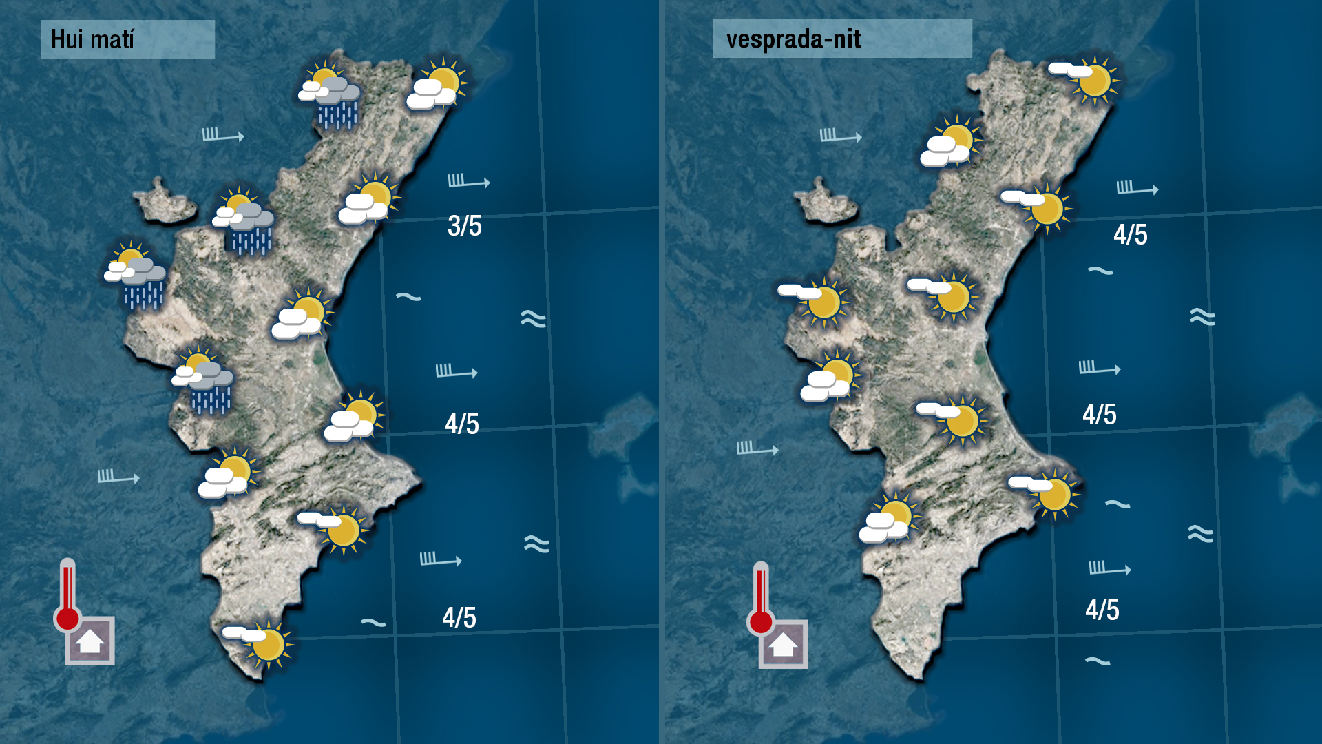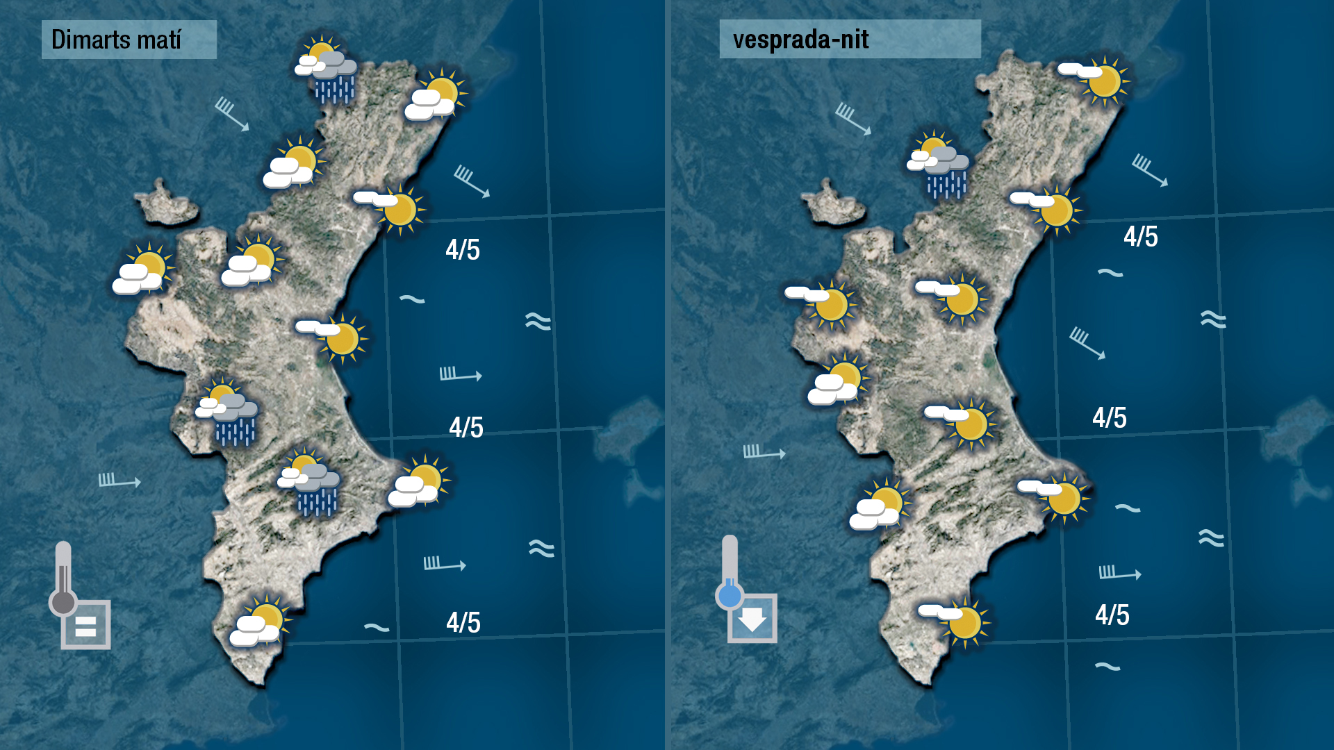 Els núvols seran més abundants durant el matí i no descarte que puga arribar a registrar-se algun ruixat dèbil, més probable per l’interior.