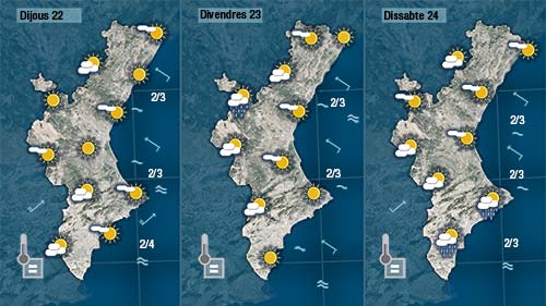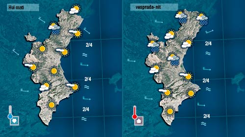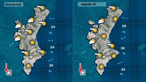Demà dimecres també bufarà de ponent i de llebeig i el pas de núvols mitjans i alts no serà obstacle perquè puguen pujar lleugerament les temperatures.